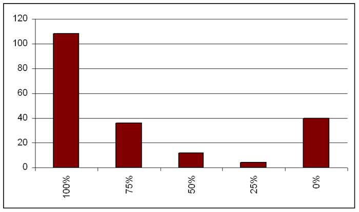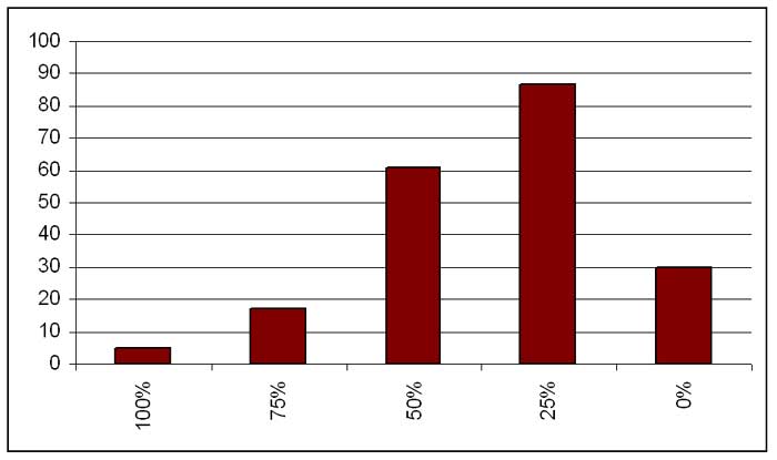 Kněží na tom nejsou o moc lépe. Následující graf přináší odpovědi 200 lidí na otázku: "Jak přínosné je pro vás průměrné kázání v ČR?" Průměr je 35 %, tj. spíš podprůměr než průměr.