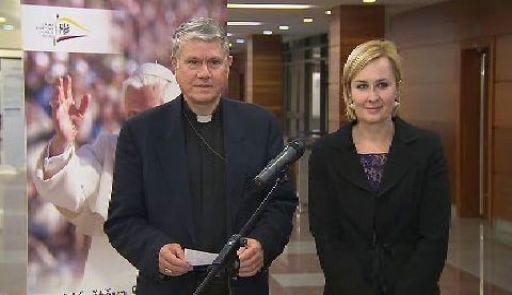 Biskup Václav Malý při závěrečné tiskové konferenci, živě vysílané ČT24