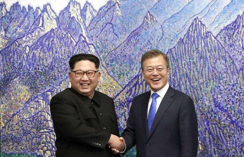 Ilustrační foto: Setkání představitelů Jižní a Severní Koree v dubnu 2018 v Mírovém domě na hranici obou zemí
